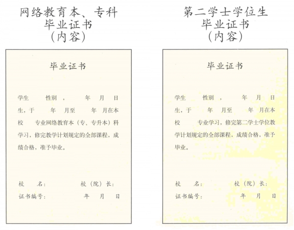 五、国家实行学业证书制度。高校学生修完教学计划规定课程考核合格准予毕业者,获得毕业证书。毕业证书内容由国家规定,种类如下:
